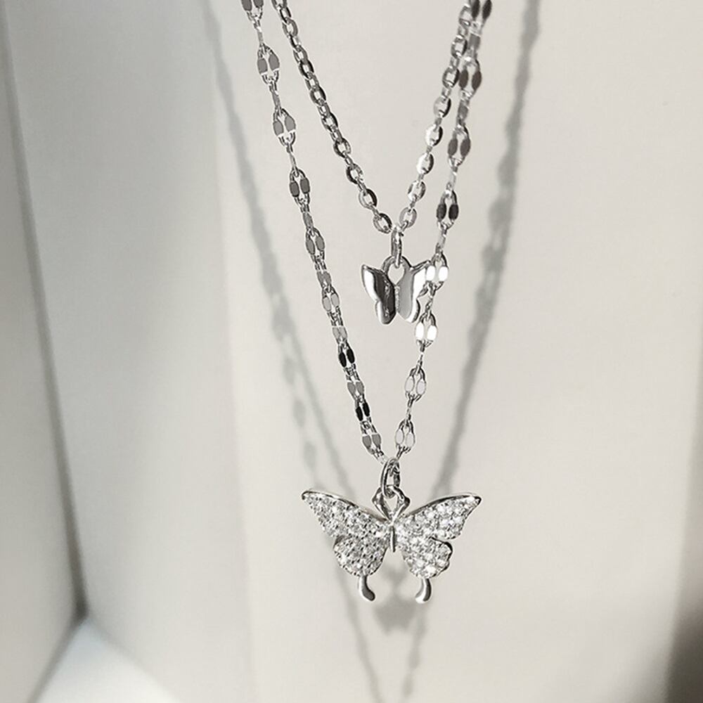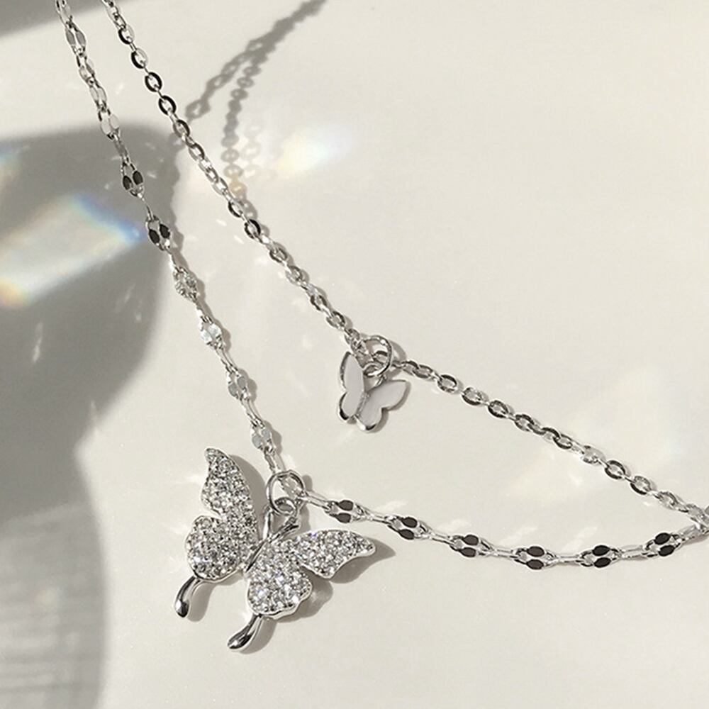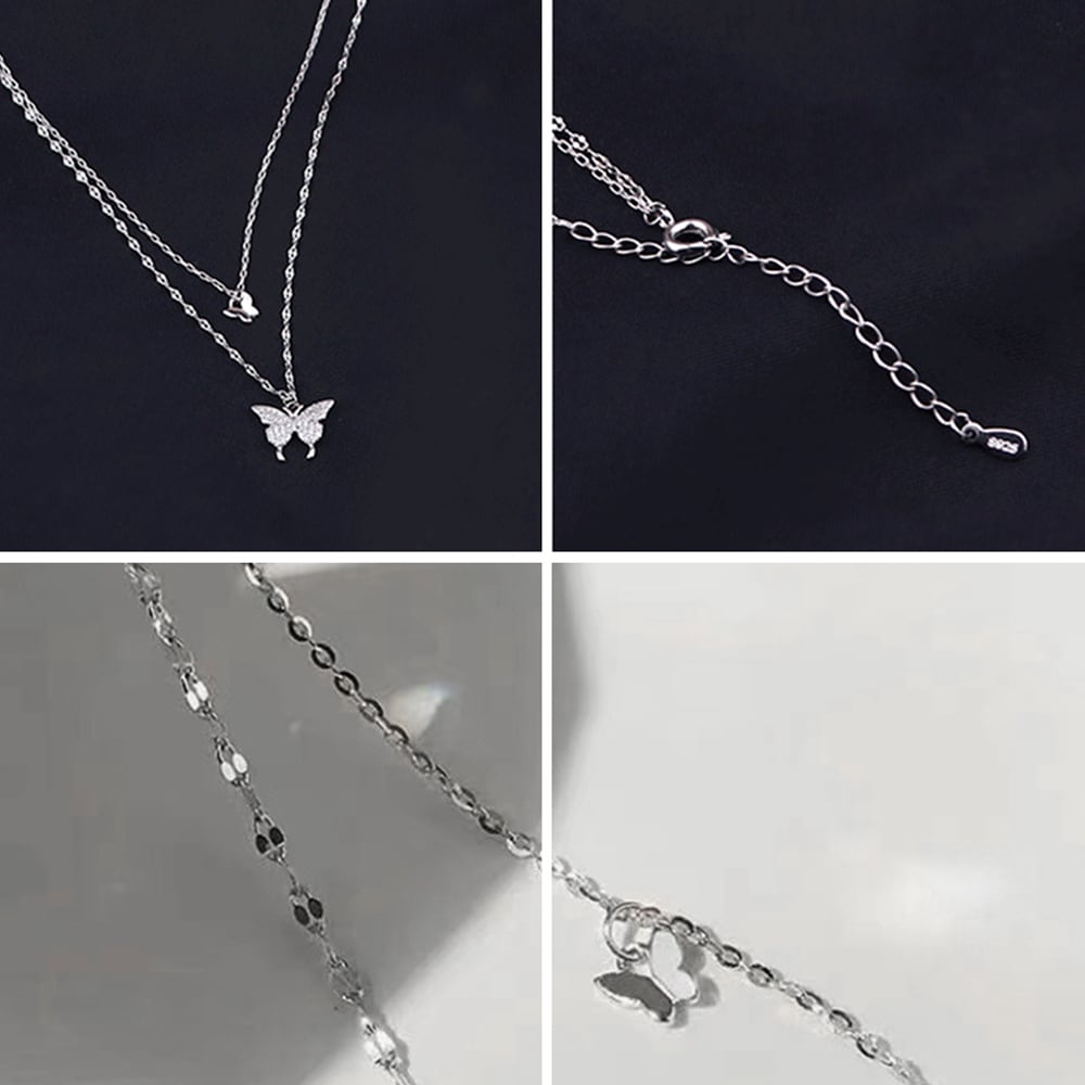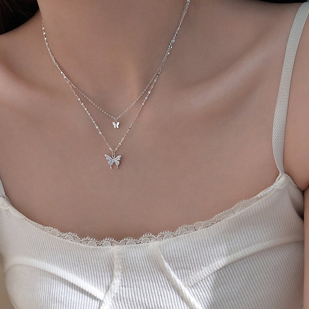 This double-strand butterfly necklace instantly adds a touch of elegance to your neckline.